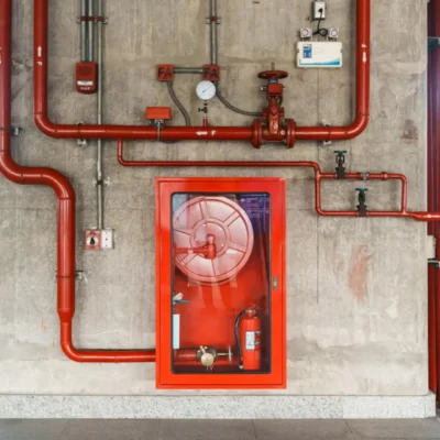 The fire brigade inlet enables firefighters to pump water directly into the system from outside the building.